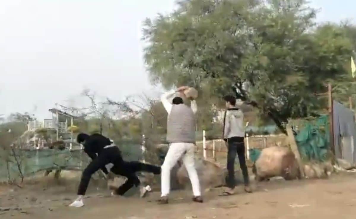 व्हिडिओमध्ये दोन पुरुष दुसऱ्याला मारहाण करताना दिसत आहेत तर चौथा व्यक्ती त्यांच्यावर हल्ला करण्यासाठी मोठा दगड उचलतो. एक आवाज ऐकू येतो – वरवर पाहता लढाई रेकॉर्ड केलेल्या व्यक्तीचा – त्याला दगडाने मारू नका असे सांगत आहे.