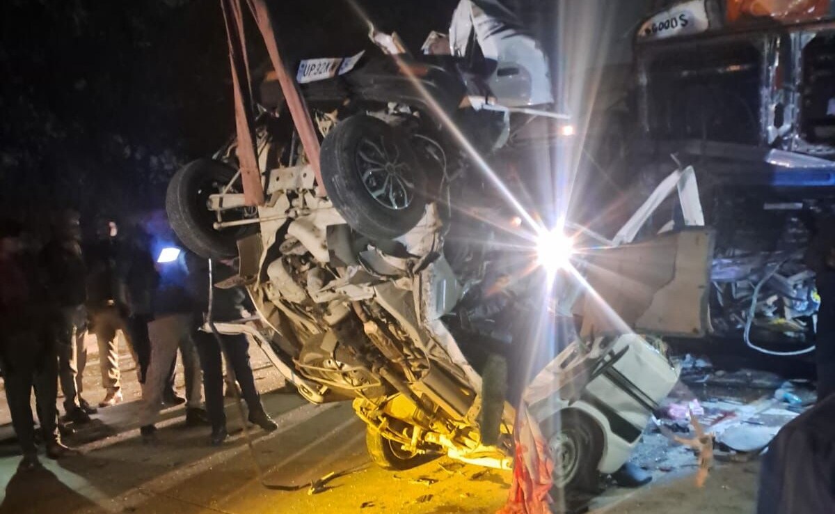 व्हॅनमधील चारही प्रवासी ठार झाले. लखनौच्या चिन्हाटमधील देवा रोडवरील अपघातस्थळावरील व्हिज्युअल्समध्ये व्हॅनची केबिन पूर्णपणे बिघडलेली दिसते.