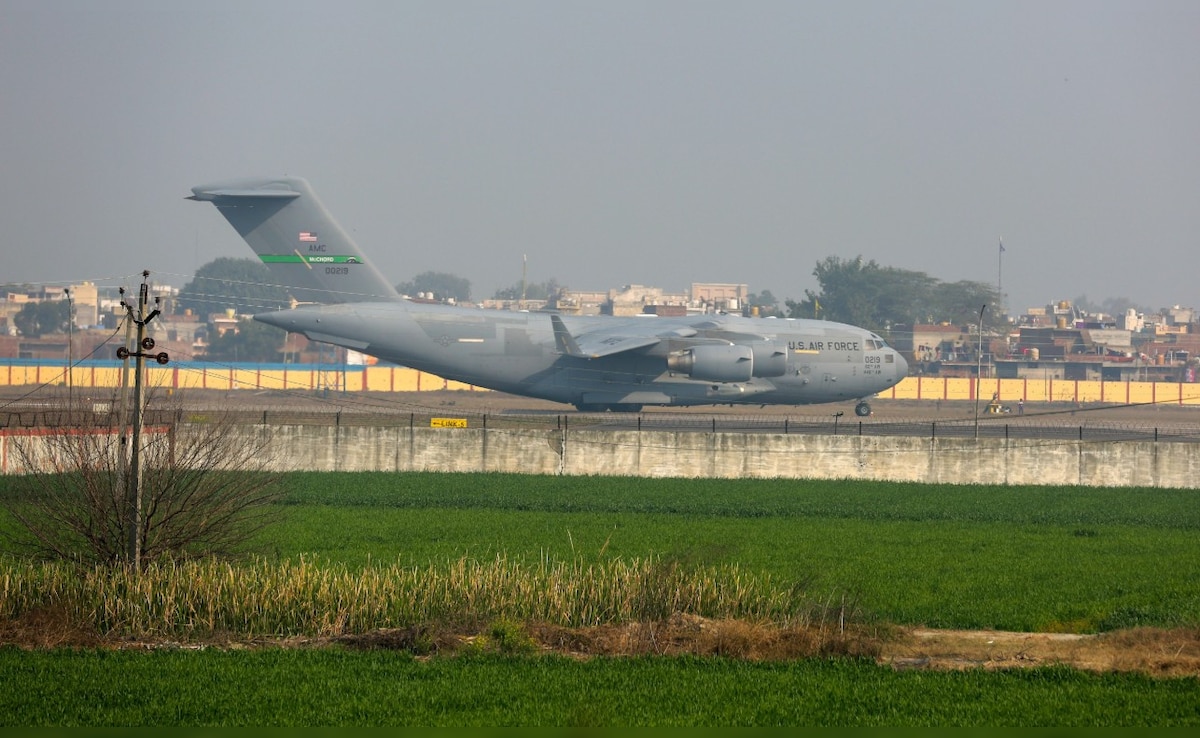#वॉच पंजाब: अमेरिकेतून येताना अमृतसरमध्ये बेकायदेशीर भारतीय स्थलांतरितांच्या जागेची तिसरी तुकडी असलेली विमान. pic.twitter.com/siuymutbmp