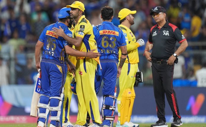 कर्णधार रोहित शर्मा (not 76 बाहेर नाही) आणि सूर्यकुमार यादव (Out 68 नॉट आउट) मुंबई भारतीयांनी रविवारी मुंबईत एकतर्फी इंडियन प्रीमियर लीग सामन्यात मुंबई भारतीयांना कमांडिंग कमांडिंगसाठी चेन्नई सुपर किंग्जला वेगळे केले. खाली असलेल्या लक्ष्याचा पाठलाग करताना, यजमानांना फलंदाजी-अनुकूल पृष्ठभागावर पूर्णपणे फरक पडला नाही कारण ते ओळीवर उपलब्ध आहेत. मोकळा करा आणि पॉइंट टेबलमध्ये सहाव्या स्थानावर झेप घ्या. रोहितने शक्तीतील जोड्यांमधून कोणत्याही गोष्टीचे भांडवल केले आणि सीएसके स्पिनर्सविरूद्ध त्याच्या हंगामातील पन्नास पन्नास वर जाण्यासाठी कमांडसह झेप घेतली, जी balls 33 चेंडूतून आली.